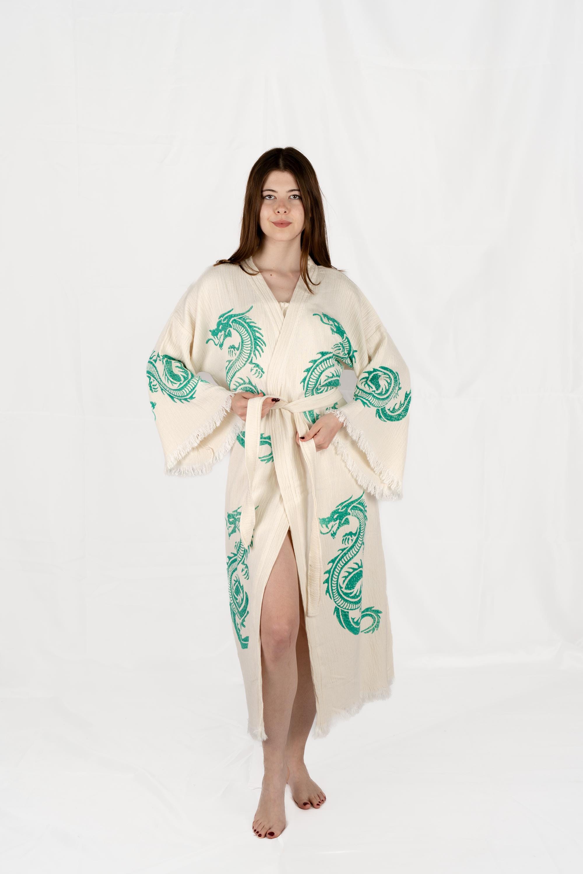 Premium Organic Cotton Robe with Beautiful Dragon Design.
