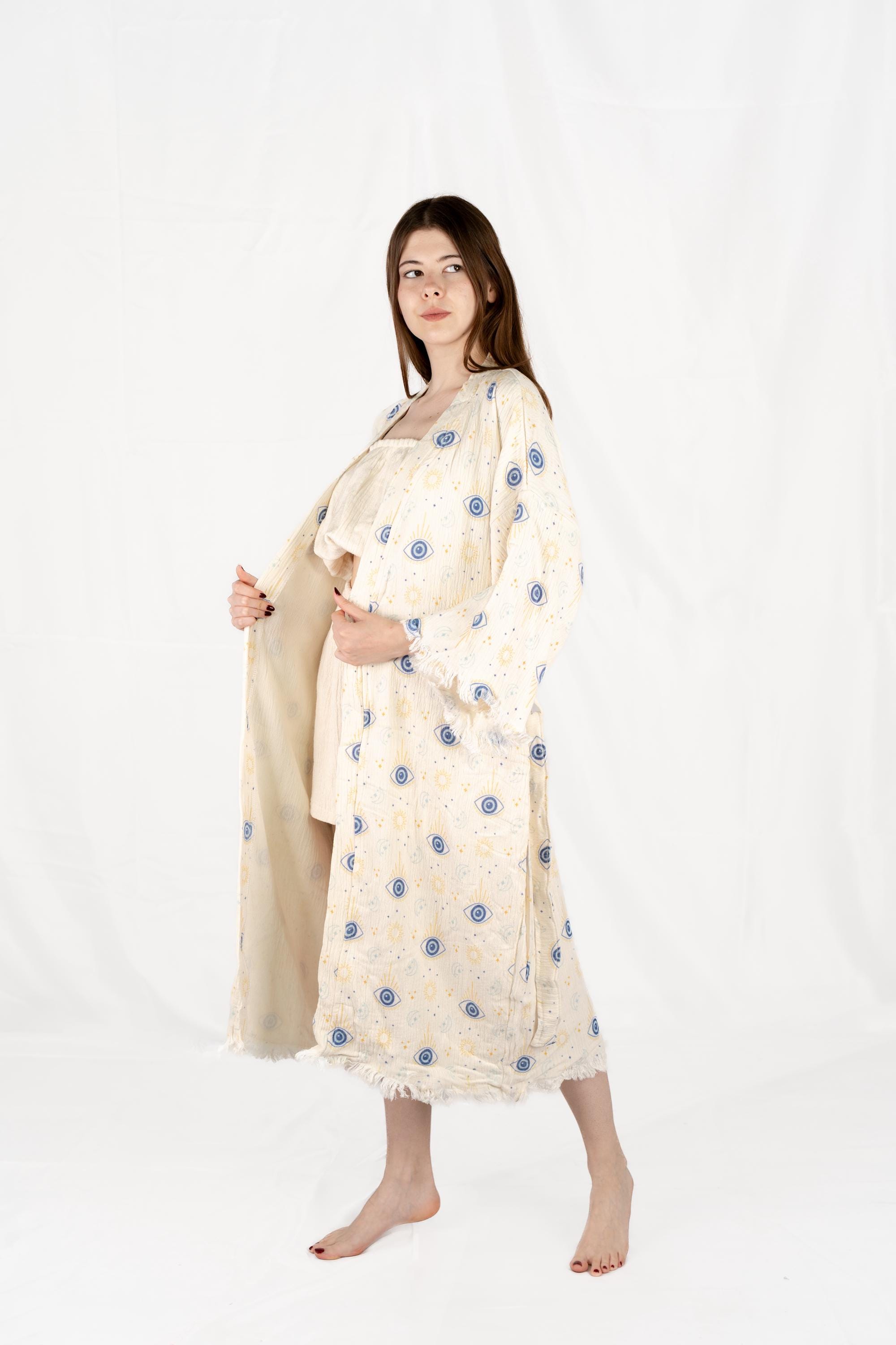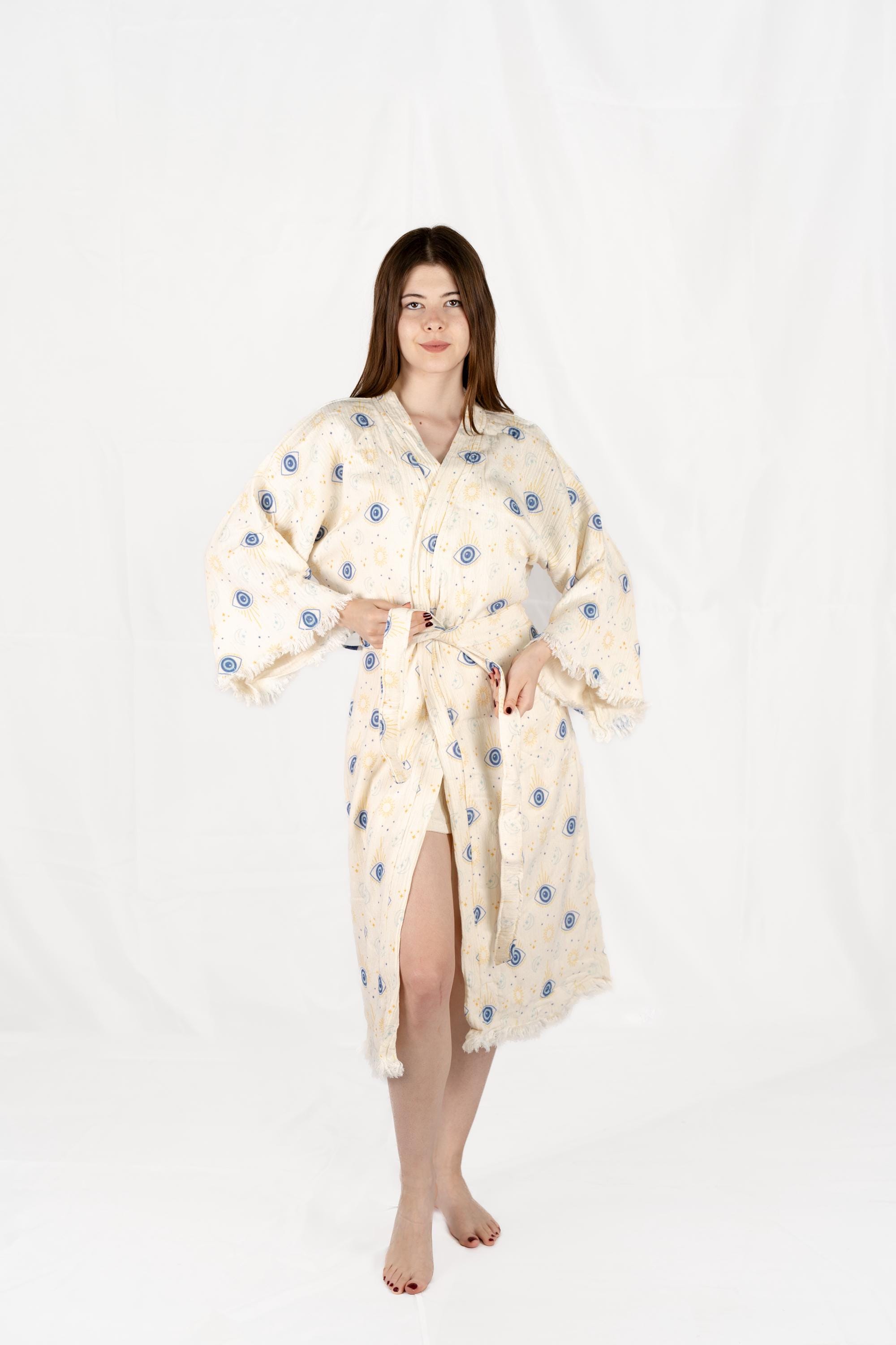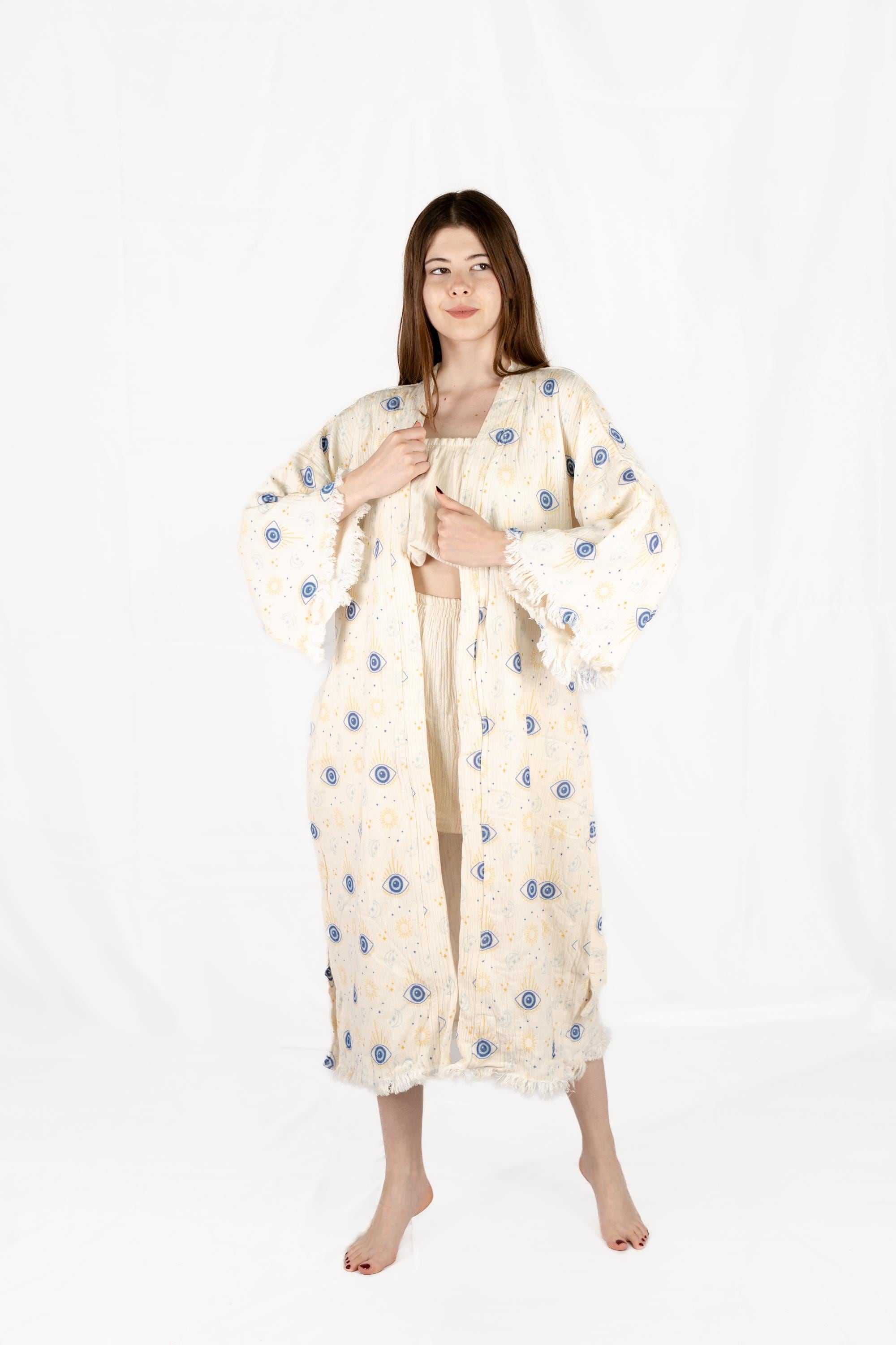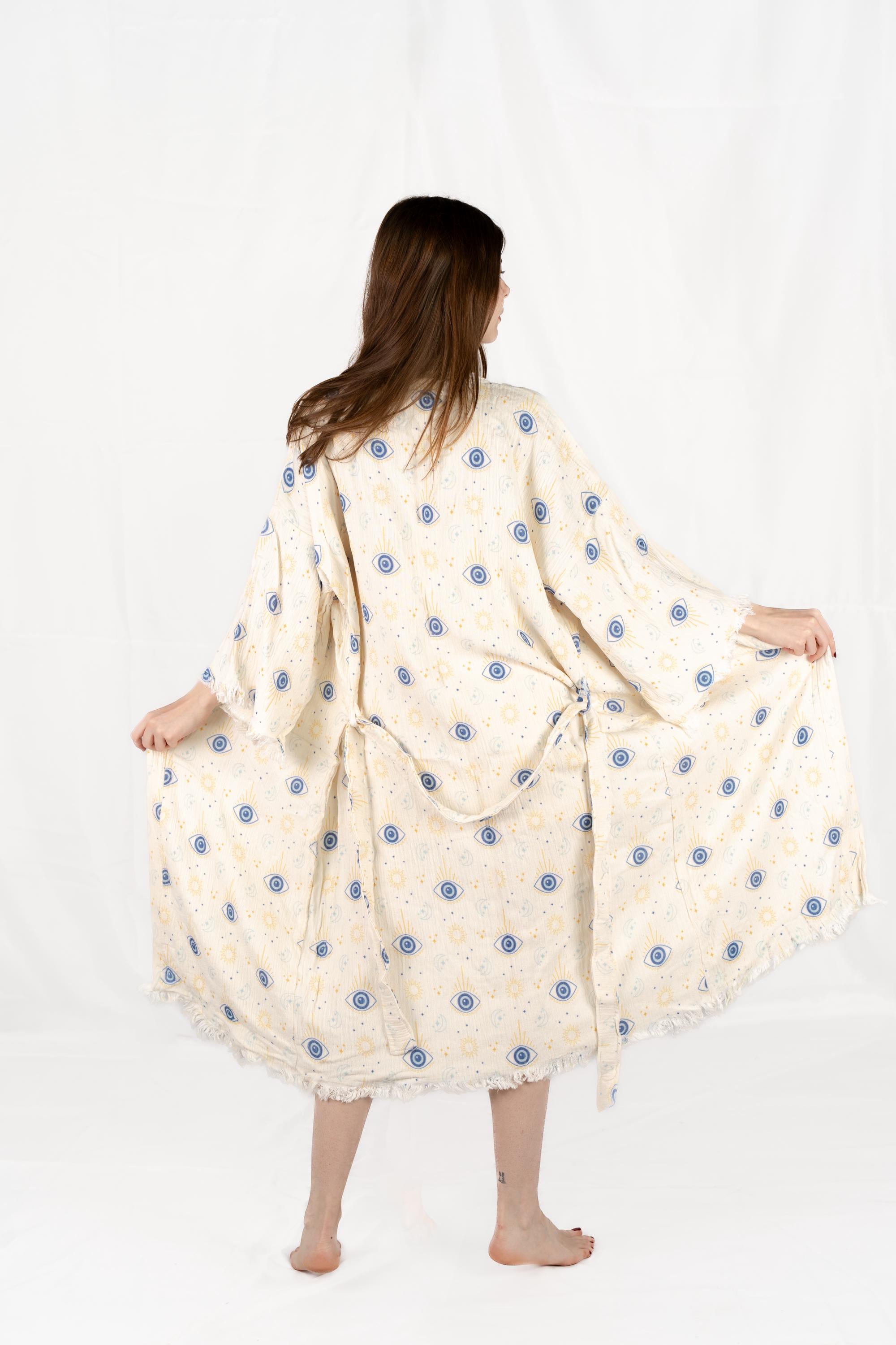 Turkish Organic Cotton Evil Eye Print Robe | Evil Eye Robe | Authentic Turkish Cotton Robe | Beach Coverup | Evil Eye Print Kimono
