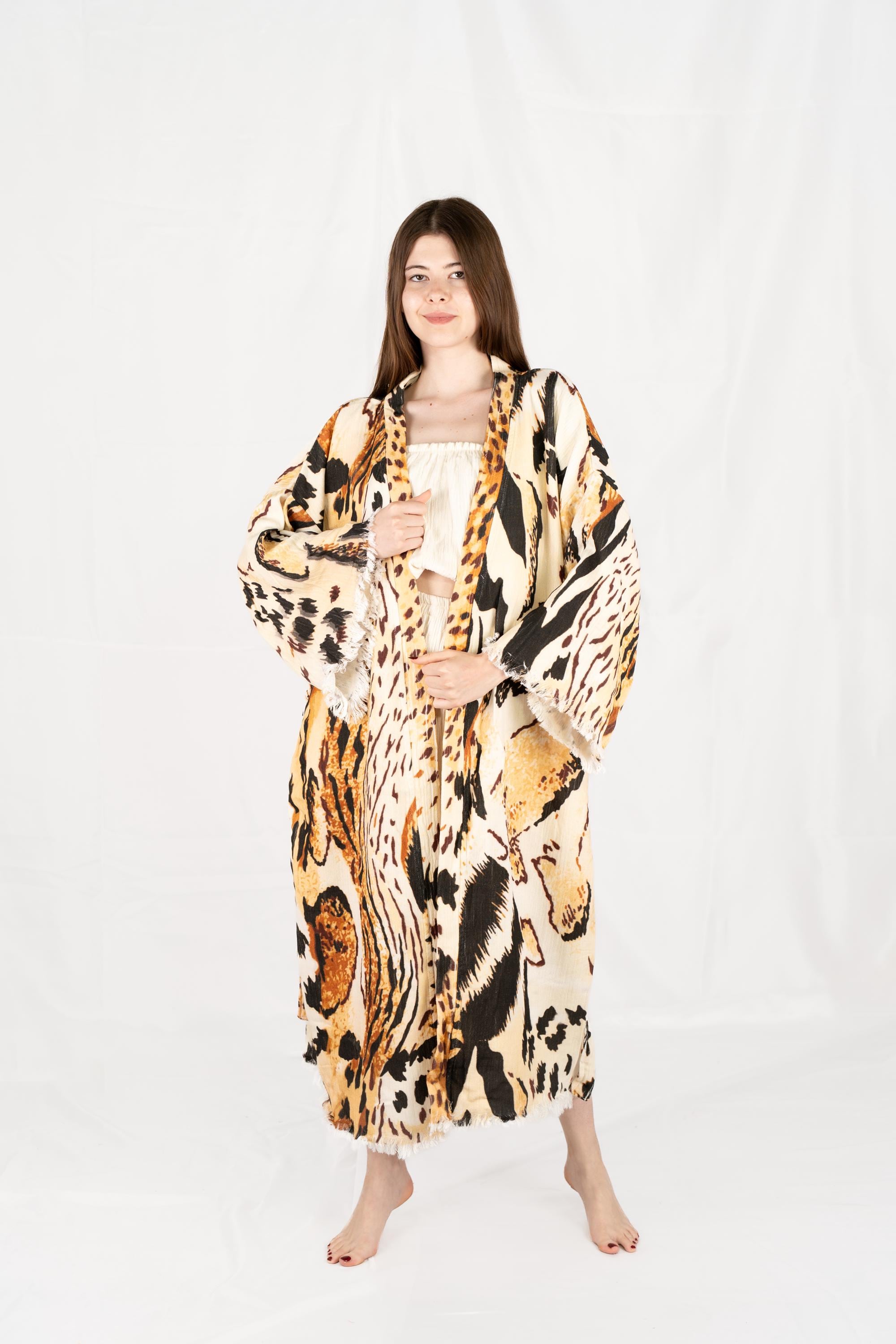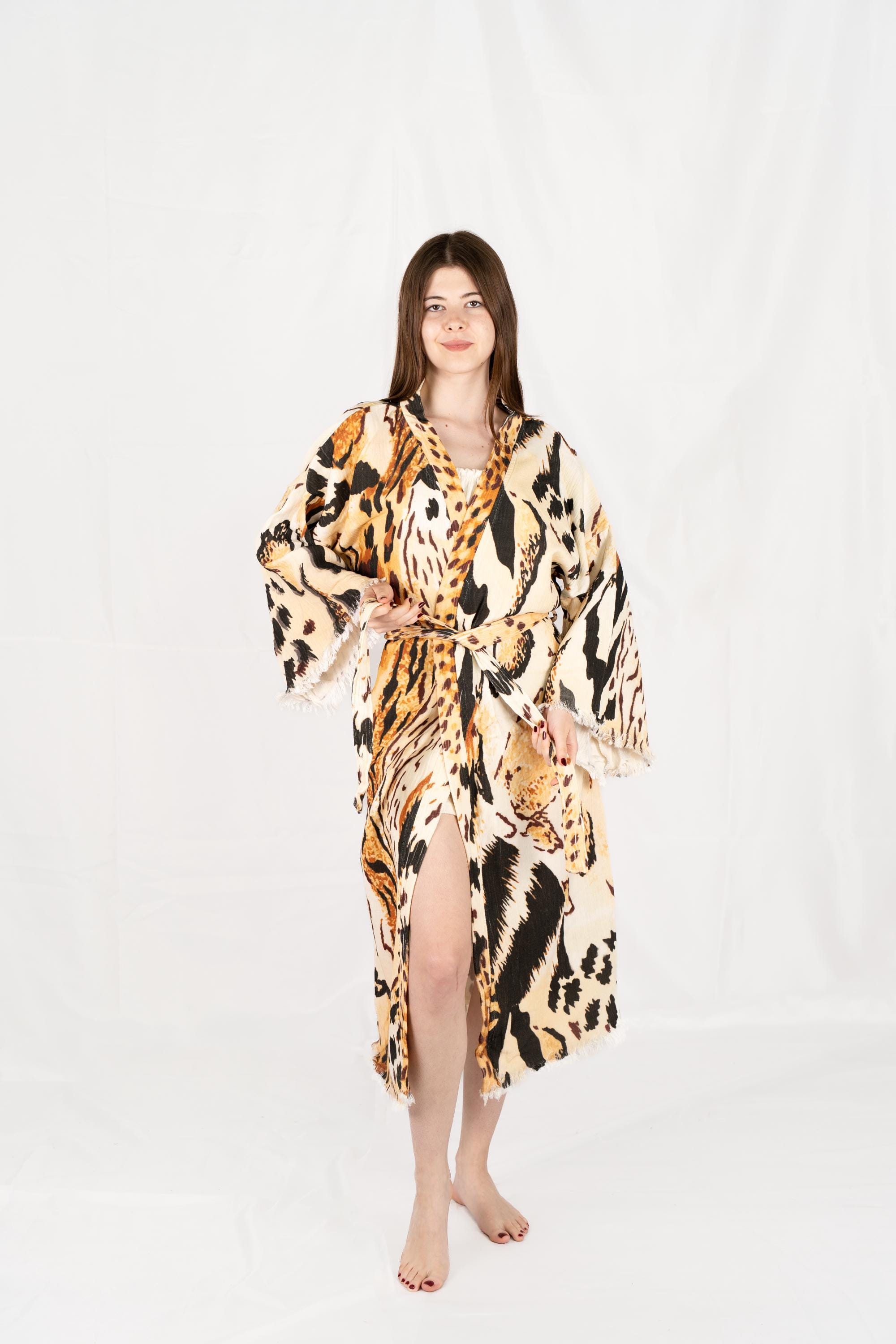 Premium Organic Cotton Robe with Beautiful Leopard Design.