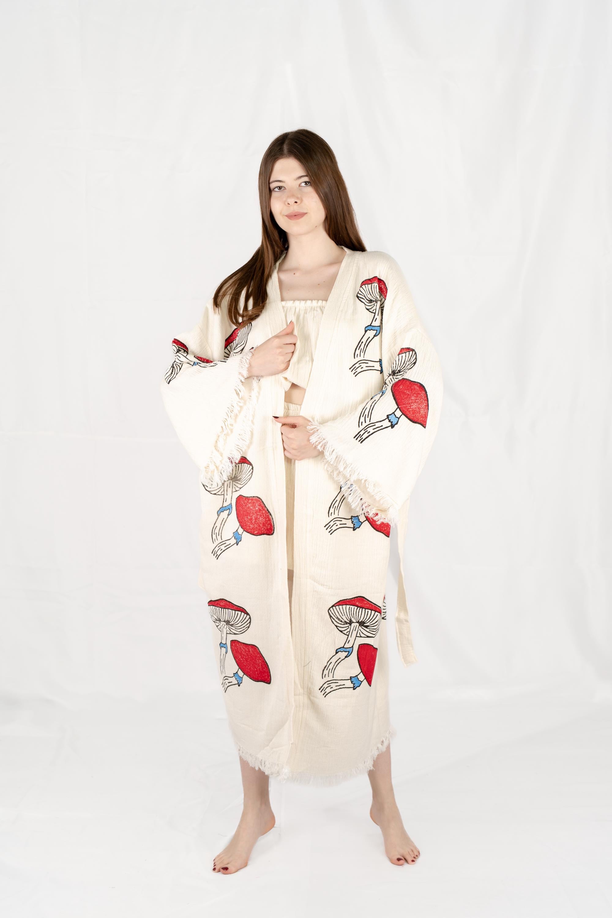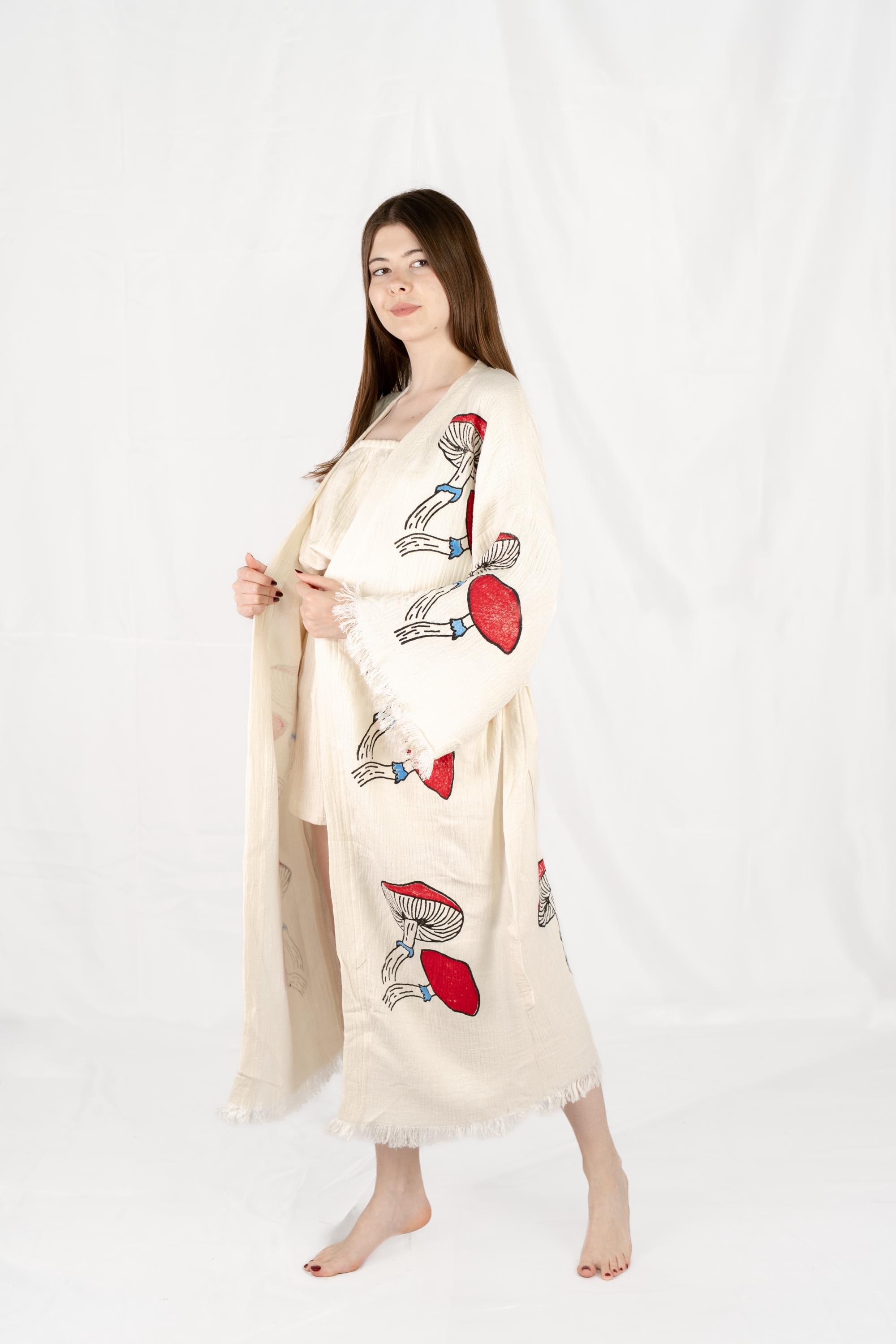 Premium Organic Cotton Robe with Beautiful Trendy Mushroom Design.