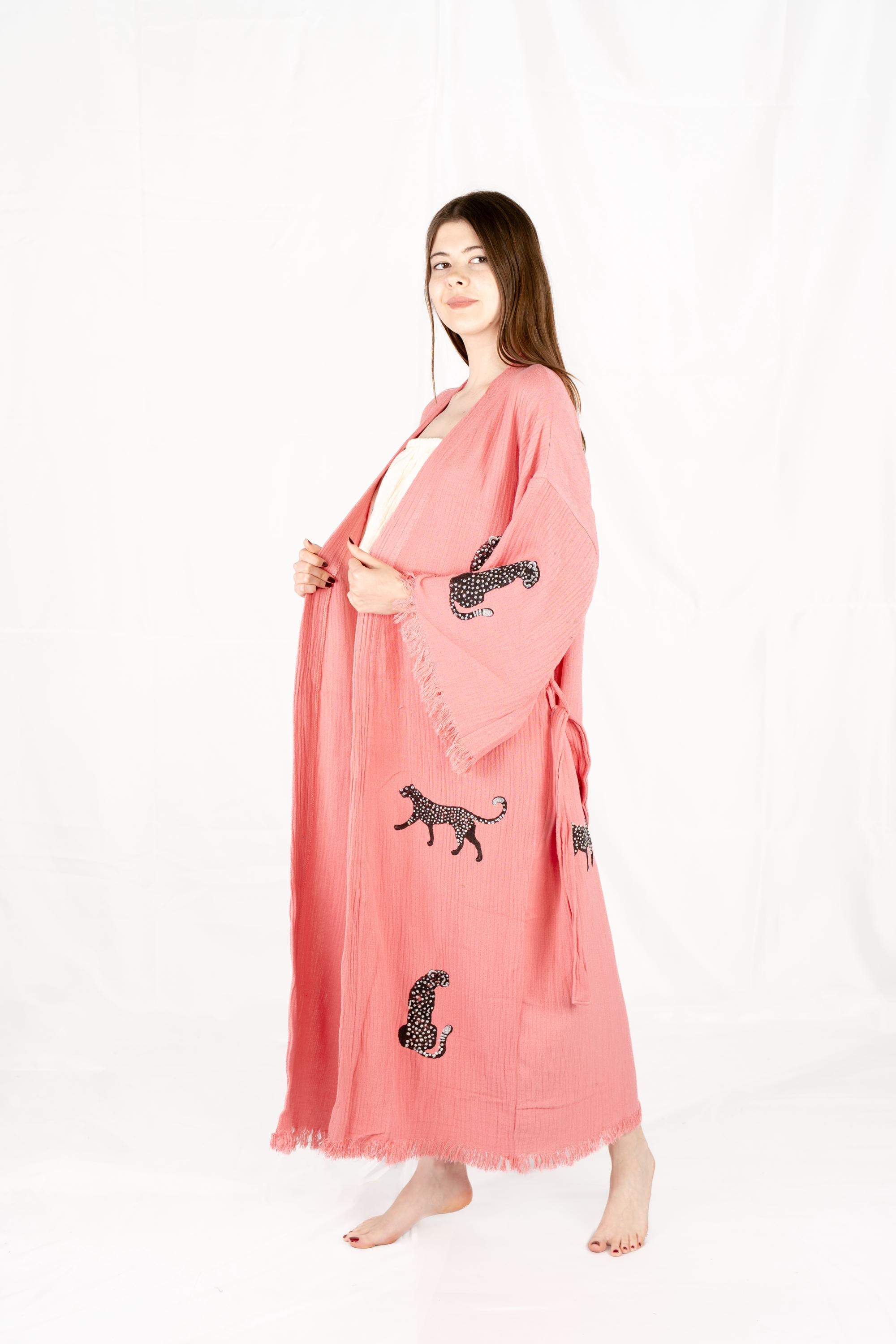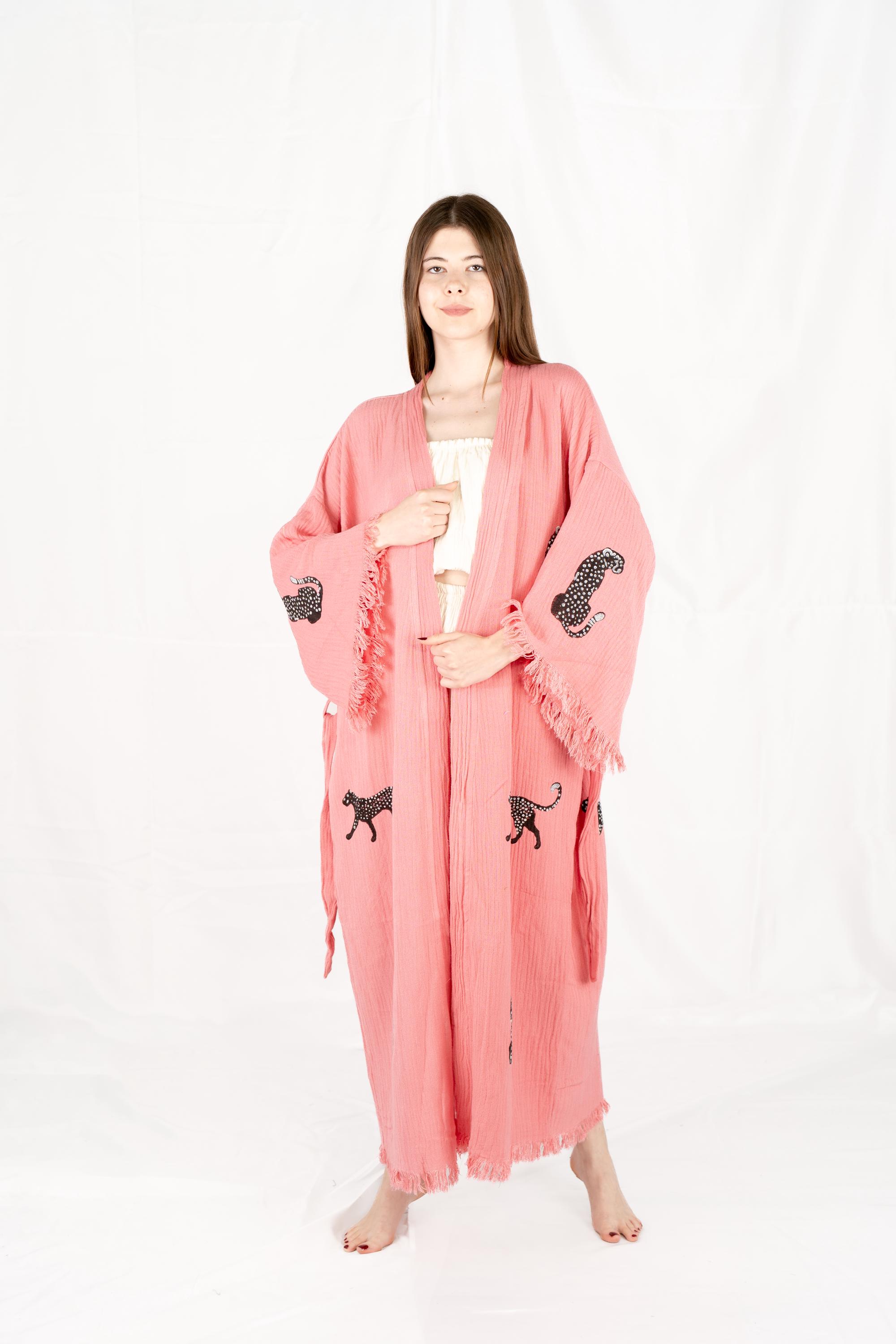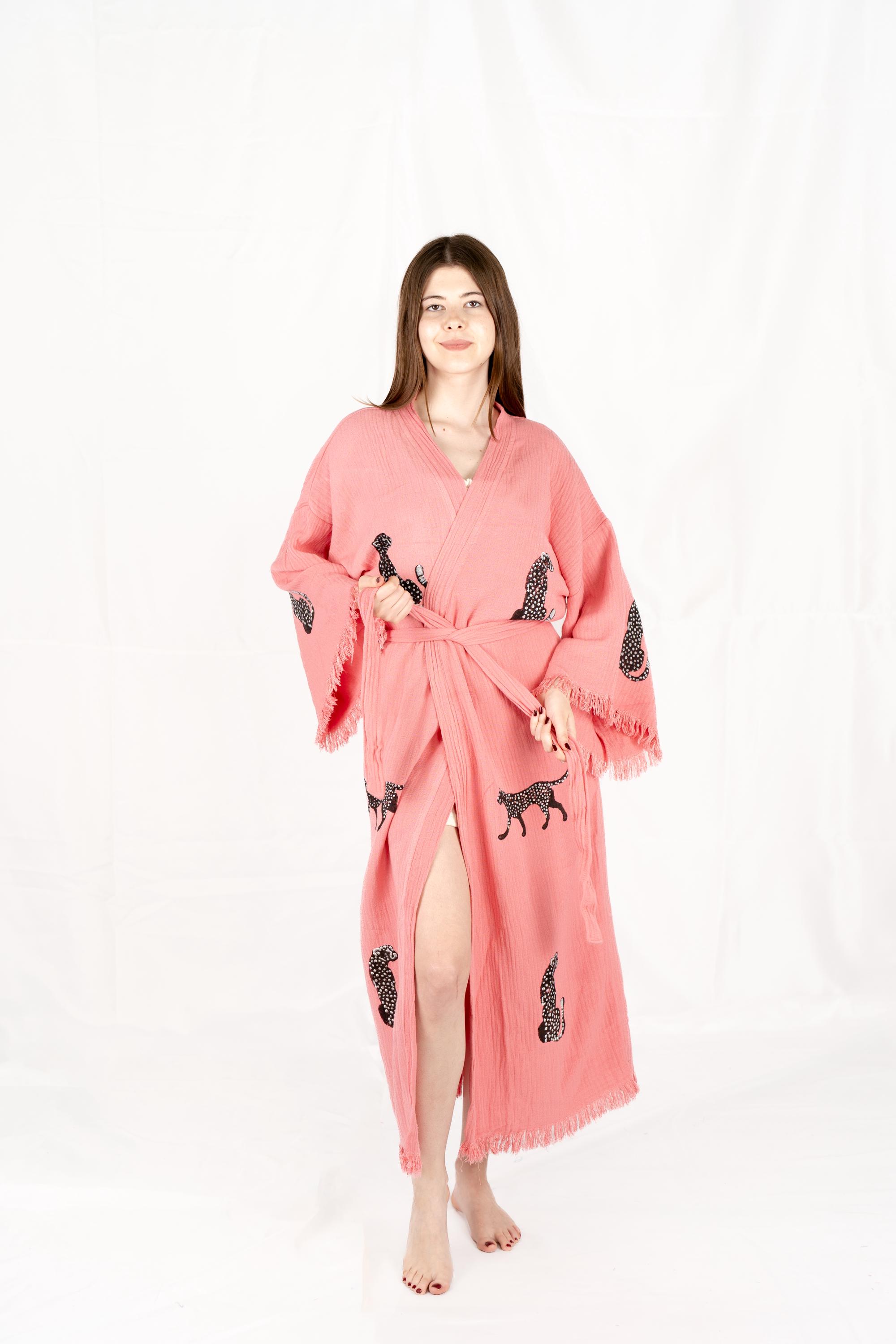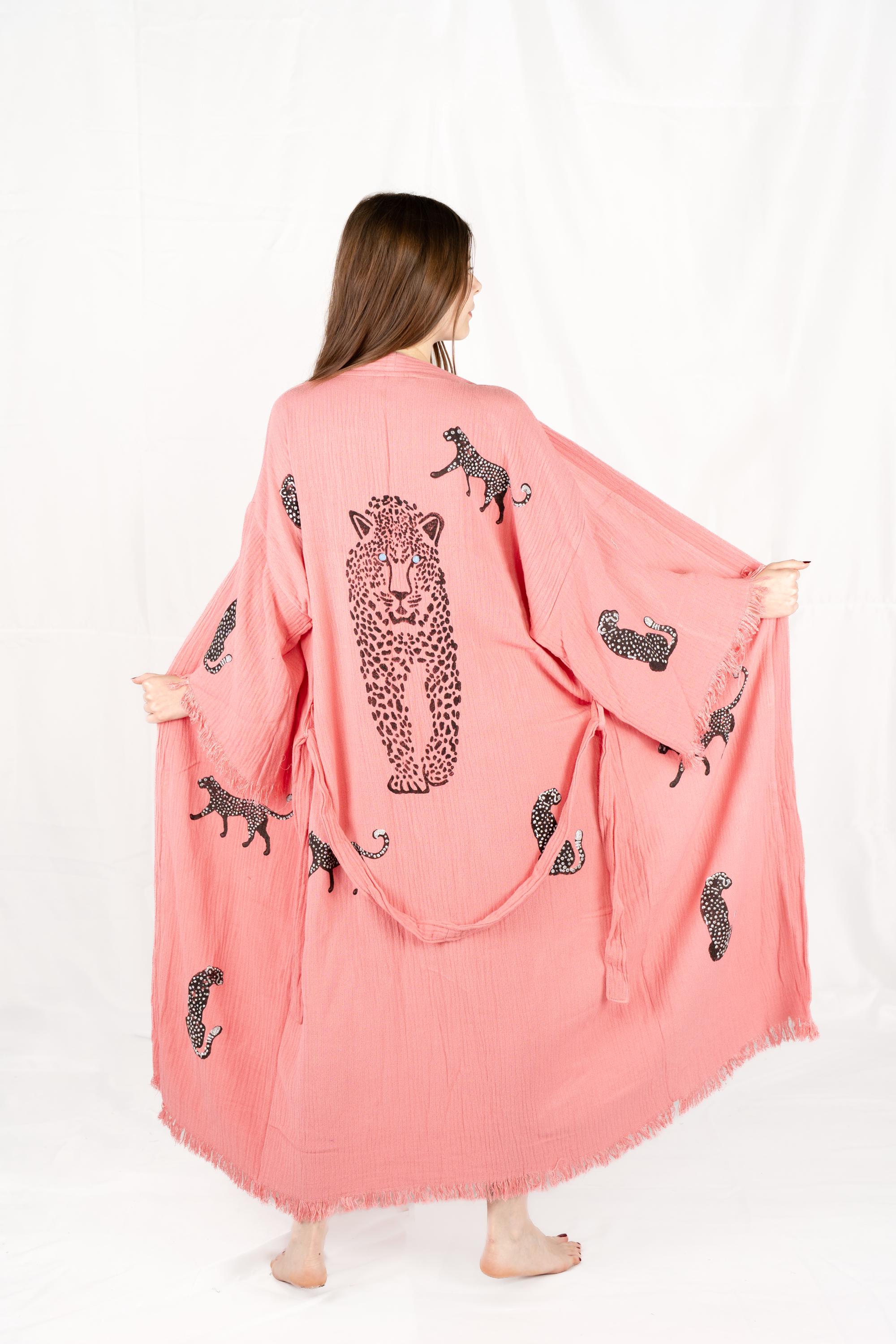 Pink Leopard Print Robe, Animal Print Clothing, Beach Coverup, Unique Kimono, Tiger Print Bathrobe, Gift For Women and Men